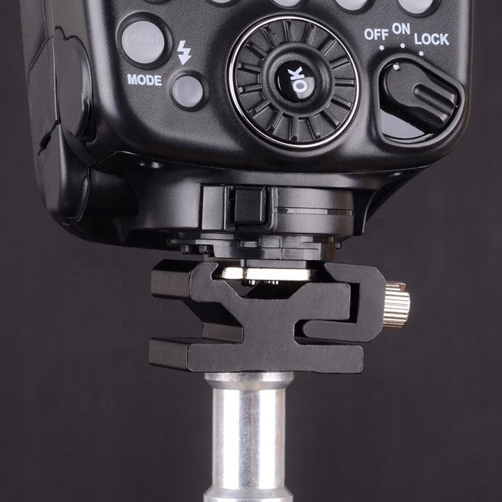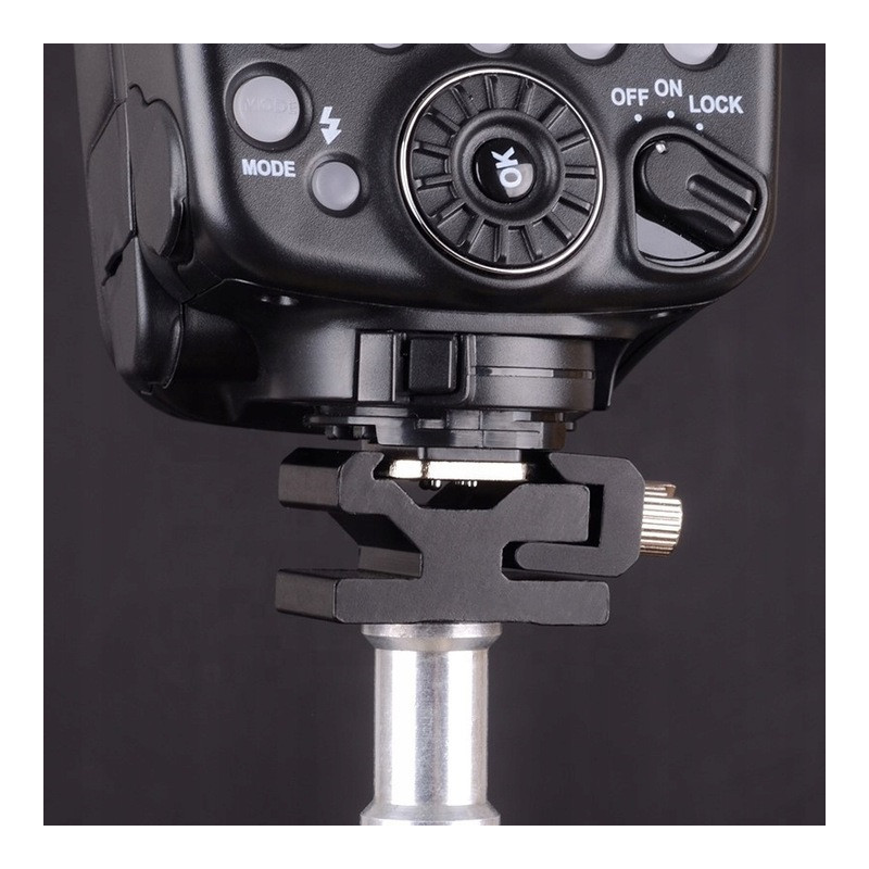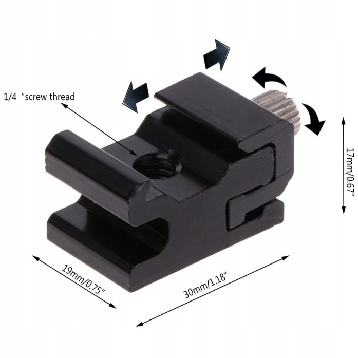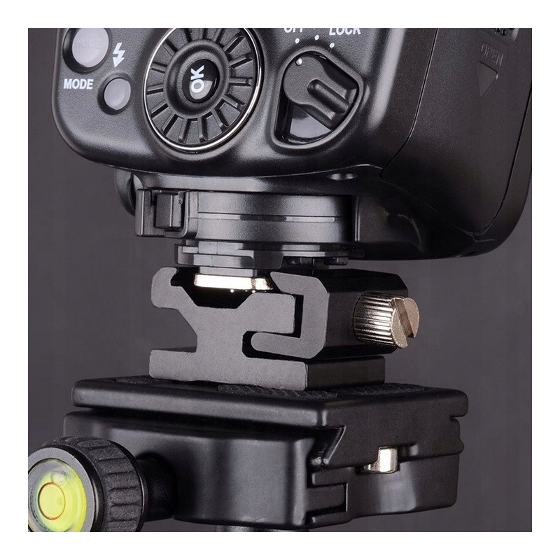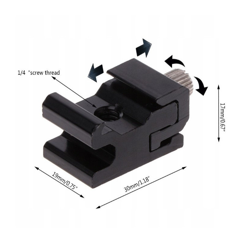 Umożliwia zamocowanie lampy błyskowej, mikrofonu oraz akcesoriów z gorącą stopką na standardowym gwincie fotograficznym 1/4" (statywy fotograficzne i studyjne).