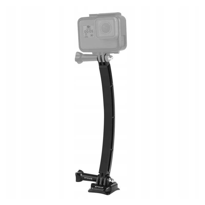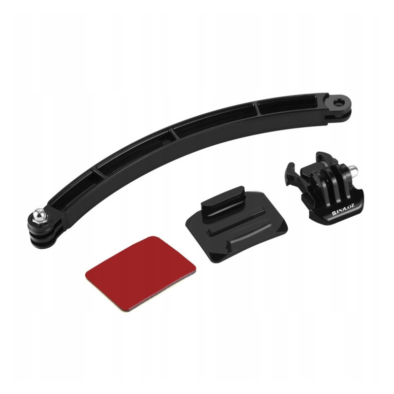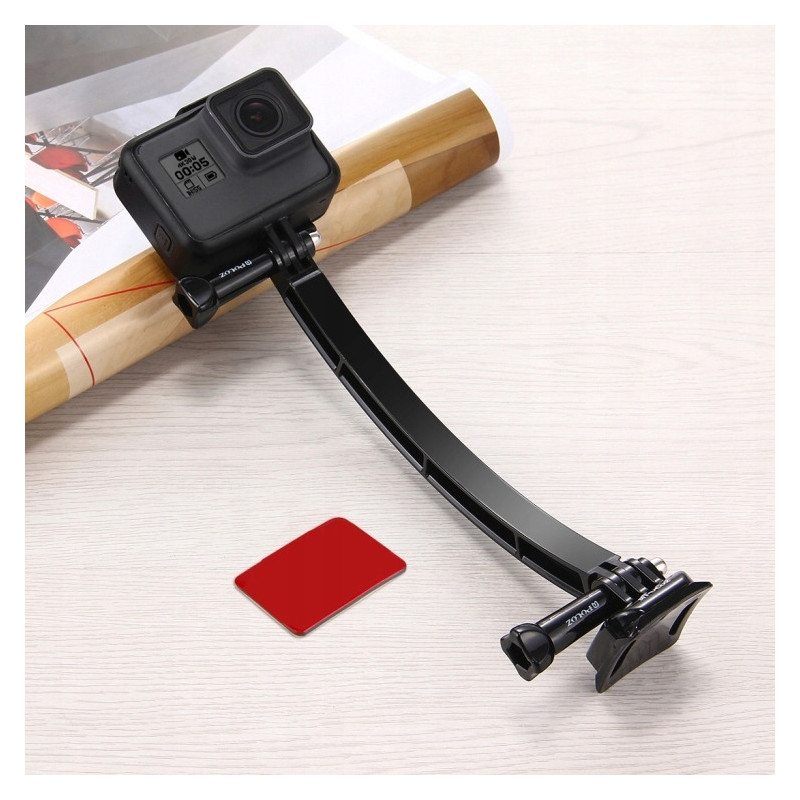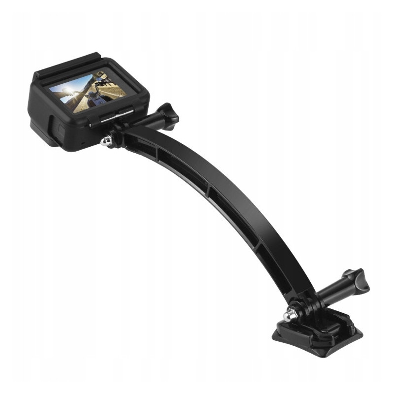 Ramię mocujemy z jednej strony w szybkozłączce. Z drugiej strony instalujemy kamerę. Następnie szybkozłączka może przykładowo zostać wpięta w mocowanie przyklejone np. do kasku.
