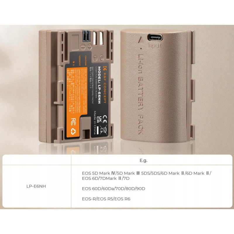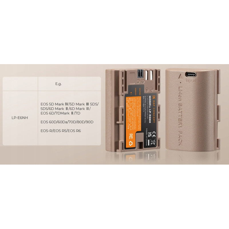 Akumulator K&F LP-E6NH USB-C to nowoczesny zamiennik akumulatora przeznaczony do pracy z cyfrowymi aparatami fotograficznymi.