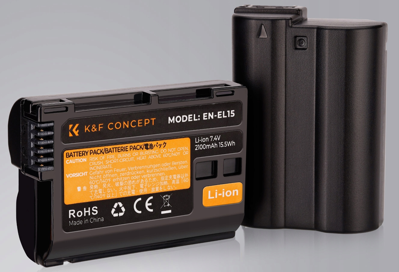 Akumulatory K&F wykonane są w technologii litowo-jonowej. Nie posiadają negatywnego efektu pamięciowego, mogą być doładowywane bez wcześniejszego rozładowania. Współpracują z oryginalnymi ładowarkami, jak również zamiennikami.
