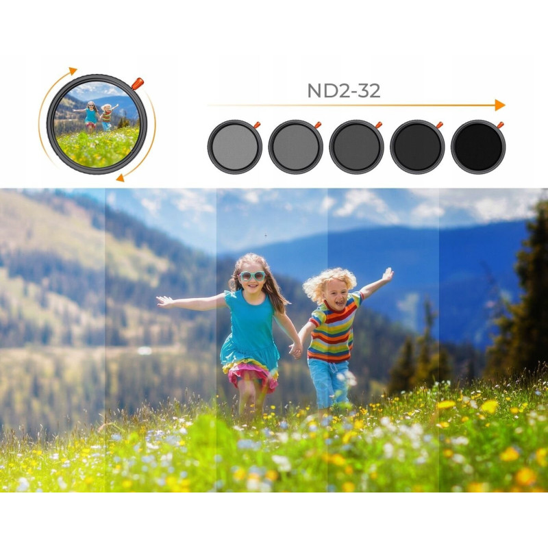 1️⃣Filtr pełny szary typu FADER - ND2–ND32 (regulowany) - regulacja światła w zakresie ND2–32 – płynna ekspozycja w każdych warunkach