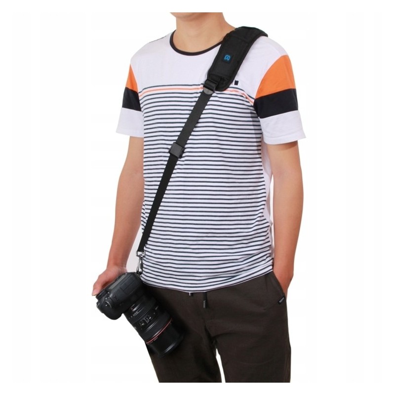 Wygodny pasek do aparatu na jedno ramię umożliwi równomierne rozłożenie ciężaru i pozwoli uniknąć bólu po długotrwałym noszeniu sprzętu.