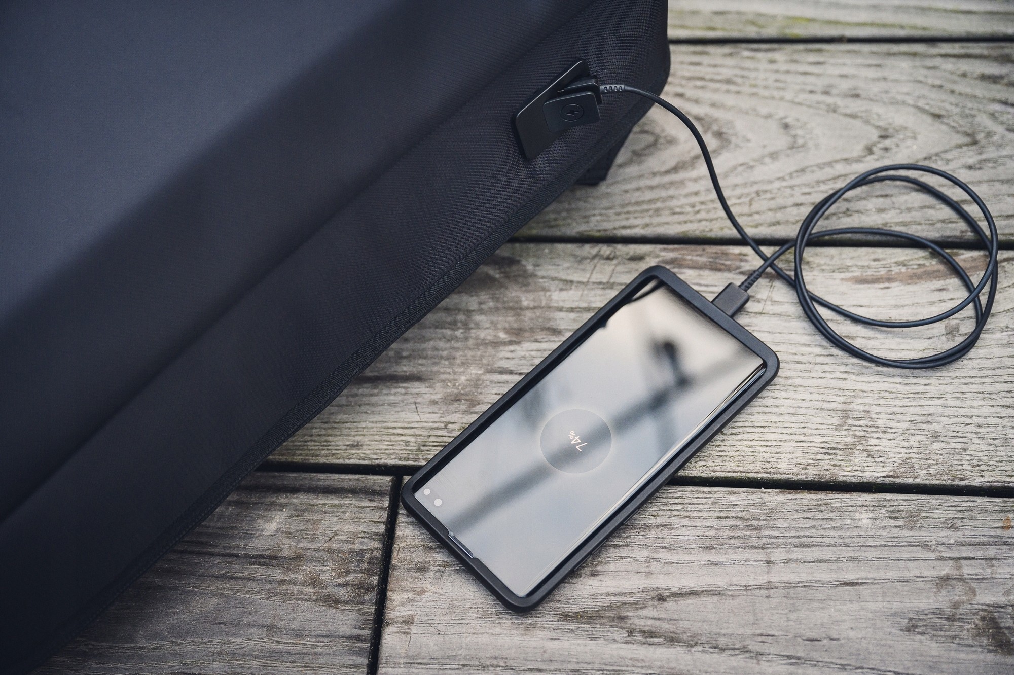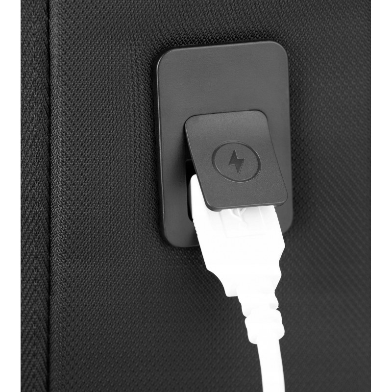 Plecak został wyposażony w zewnętrzne gniazdo USB. Takie rozwiązanie umożliwia schowanie power banka do wewnętrznej kieszeni i wygodne ładowanie smartfona w dowolnej chwili.