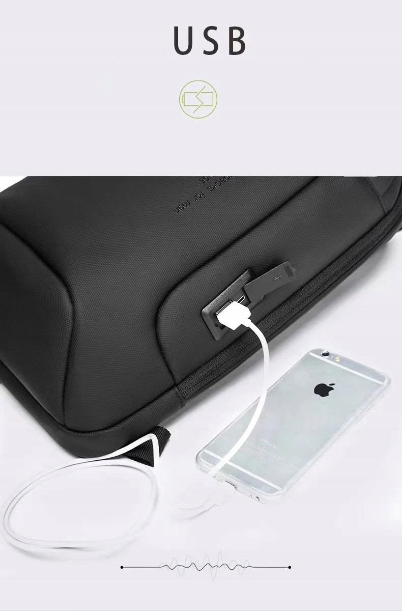Plecak BANGE posiada wbudowany, zewnętrzny port USB.