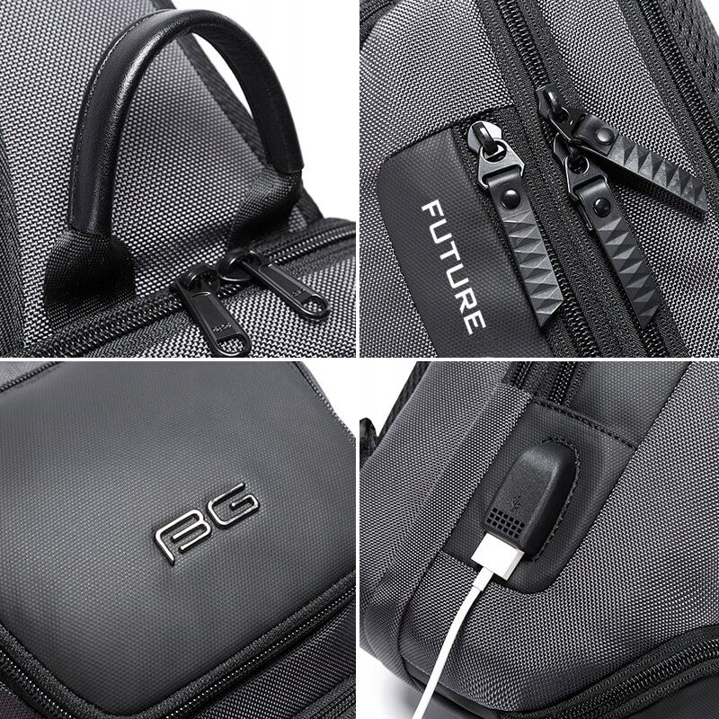 Plecak BANGE posiada wbudowany, zewnętrzny port USB.