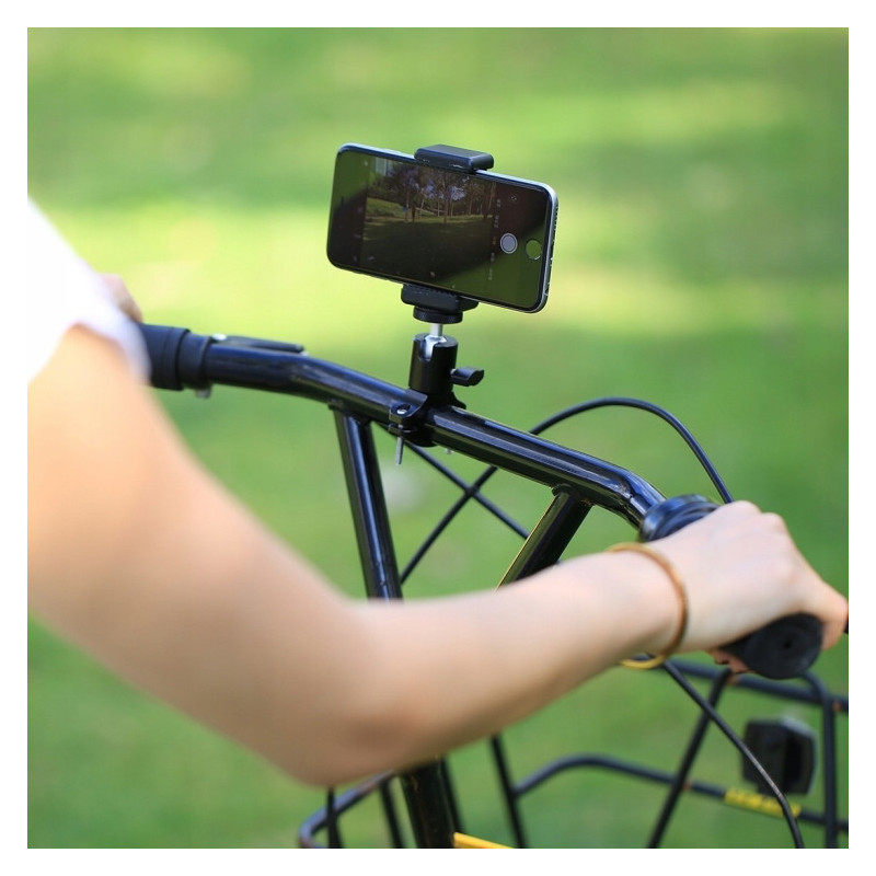 Uchwyt umożliwi szybkie zamocowanie telefonu oraz montaż na głowicy.