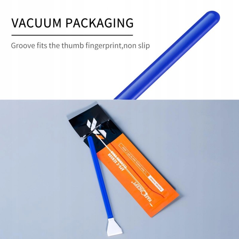 10x Sztyft do czyszczenia: Miękka i elastyczna główka wacika równomiernie rozprowadza nacisk na czujnik. Pozwala wacikowi osiągnąć najlepszy efekt czyszczenia. Nakładka na końcówkę z bardzo cienkiej mikrofibry jest wycinana laserowo - nie pyli. Jest bardzo cienka, gładka i nie pozostawia kłaczków. Patyczki pakowane są próżniowo.