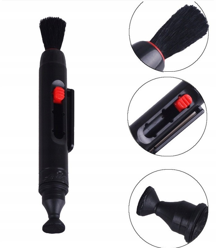 Lenspen posiada z jednej strony pędzelek do czyszczenia optyki z kurzu, natomiast z drugiej strony końcówkę usuwającą wszelkiego rodzaju plamy z soczewek.